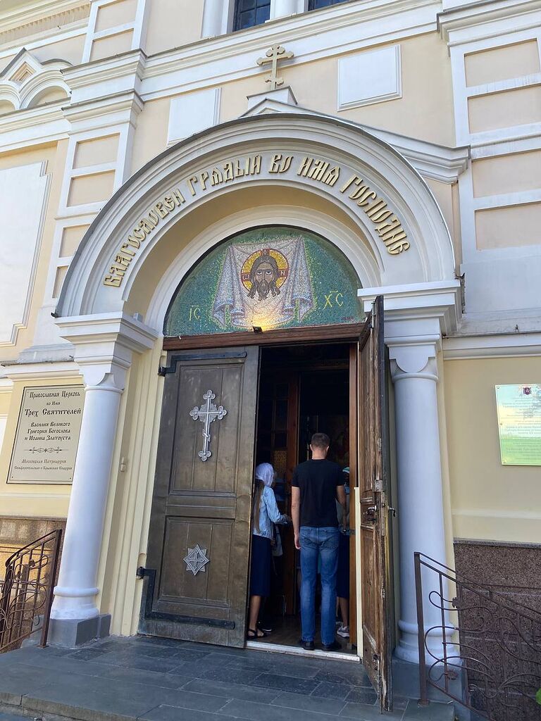 Храм Трёх Святителей в Симферополе освящён в честь трёх святителей: Иоанна Златоуста, Григория Богослова и Василия Великого. Здание при Таврической семинарии возвели в 1902 г., автор проекта — зодчий А. Карапетов, создатель многих культовых сооружений Крыма. 20 лет спустя студентов разогнали, церковь закрыли и разместили в ней архив, а после войны — конструкторское бюро. Иконостас и росписи уничтожили. Лишённый куполов и колокольни храм возвратили РПЦ в 1989 году. Ещё через 10 лет вернулась к жизни Таврическая семинария, и будущие духовные пастыри снова служили (до переезда духовной школы в 2025 году в Херсонес) в своём доме молитвы.