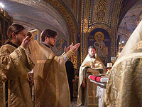 6 сентября следопыты встречали Владыку Тихона и приняли участие в архиерейской службе.