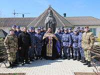 В подразделения переданы православные стяги и шевроны с христианской символикой.